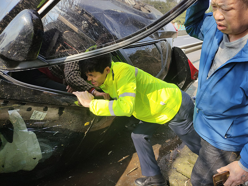 东湖养护路产安全管理所路管员救出事故车上被困人员