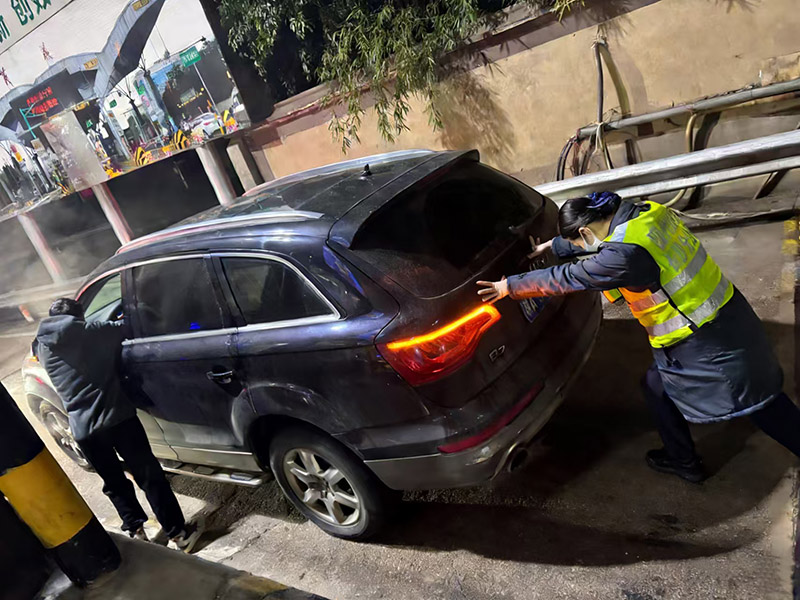 黄花收费站当班人员帮助故障车辆驾驶员解决困难