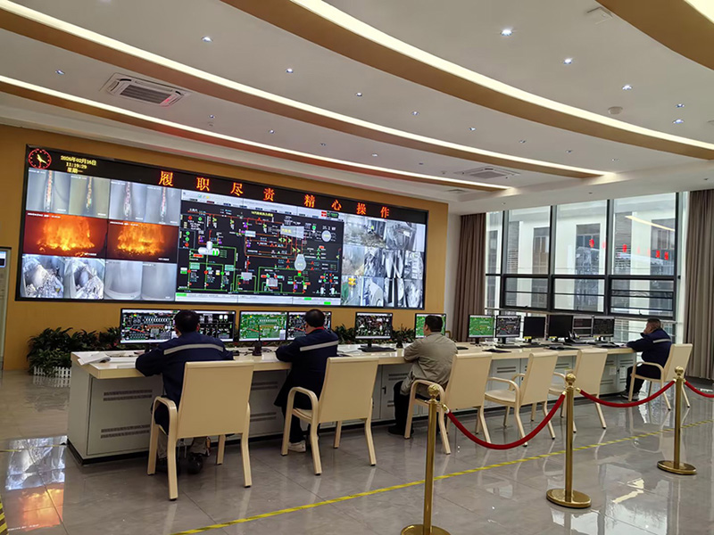 生产人员在中控室监控运行数据