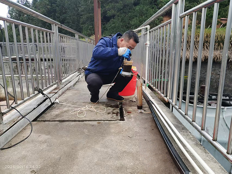 工作人员对生化池混合液进行现场取样